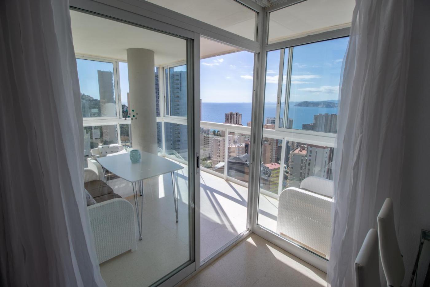 Apartment with Sea View. The air-conditioned apartment is located on the 21st floor and has 2 bedrooms, 2 bathrooms, seating area, and a flat-screen TV. There is a spacious terrace with panoramic views of the sea, the mountains, Benidorms island, and Levante Beach. The fully equipped kitchen comes with a dishwasher, washing machine, microwave, oven, Nespresso coffee machine, fridge, and kettle. Towels and bed linen are available.
