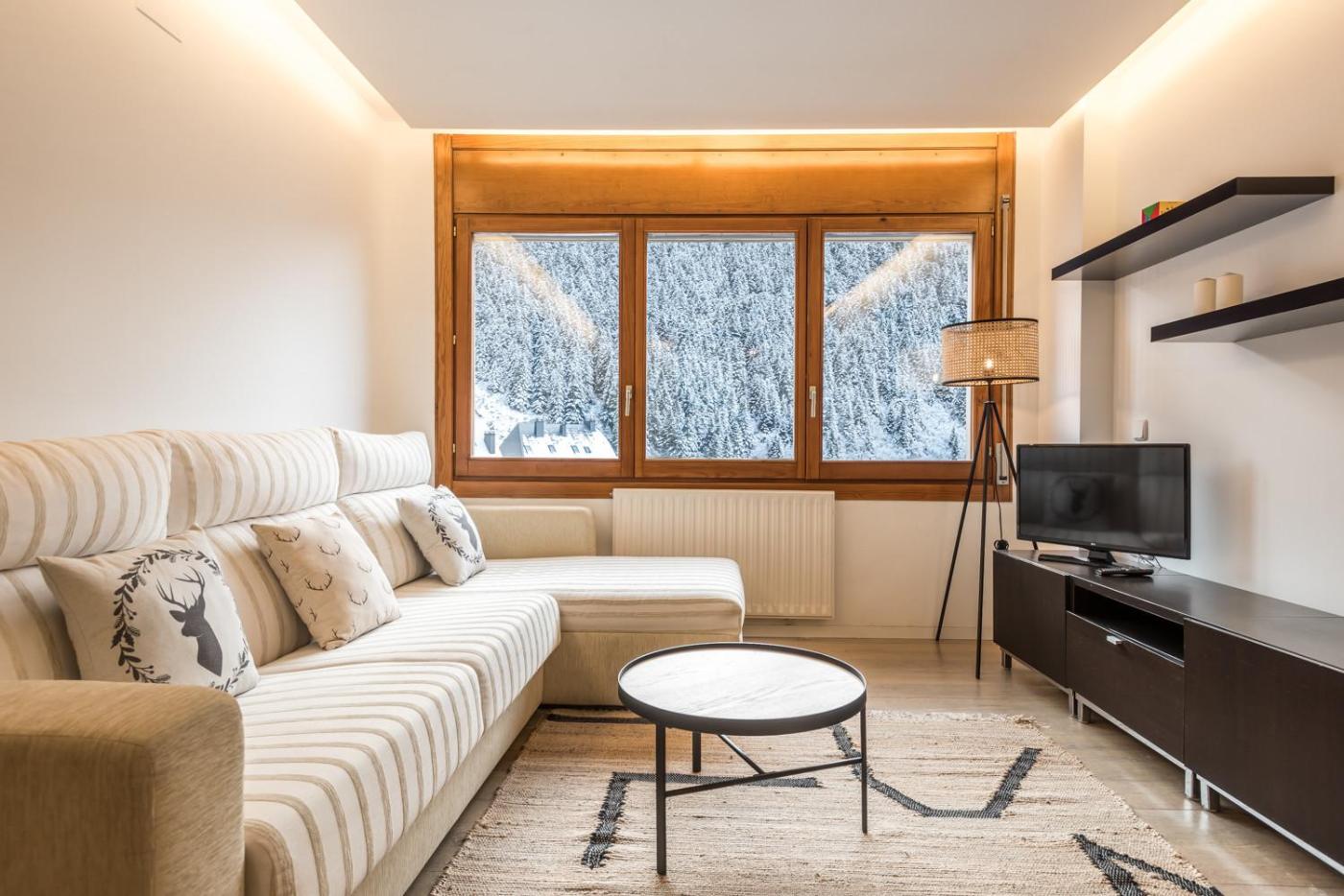 Two-Bedroom Apartment. This apartment is comprised of 1 living room, 2 separate bedrooms and 2 bathrooms with a shower and a hairdryer. Meals can be prepared in the well-fitted kitchen, which comes with a refrigerator, a dishwasher, kitchenware and a microwave. The apartment offers a TV, a washing machine, a tea and coffee maker, tumble dryer as well as mountain views. The unit offers 4 beds. ;