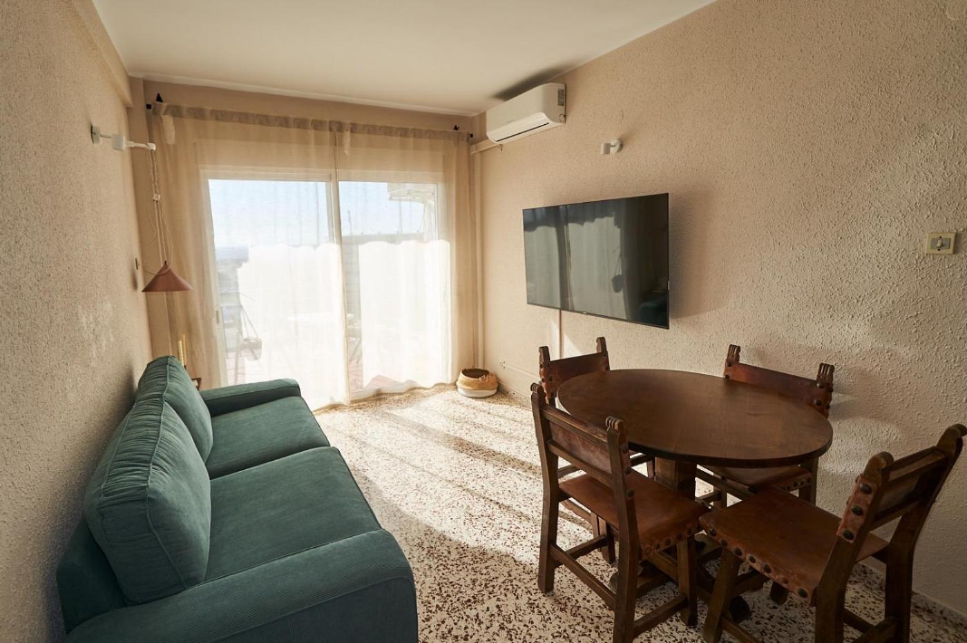 The apartment is equipped with 2 bedrooms, 1 bathroom, bed linen, towels, a flat-screen TV, a dining area, a fully equipped kitchen, and a balcony with sea views. Guests can enjoy a meal on an outdoor dining area while overlooking the mountain views. The accommodation is non-smoking.