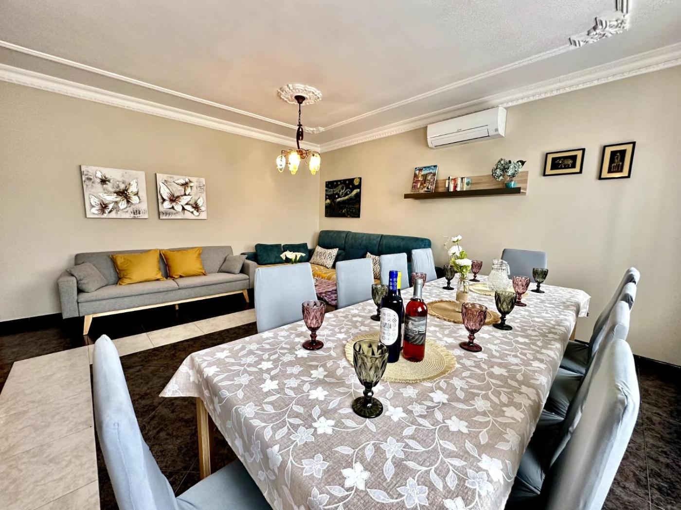 The spacious holiday home with a terrace and mountain views features 5 bedrooms, a living room, a flat-screen TV, an equipped kitchen with a dishwasher and an oven, and 4 bathrooms with a bidet. Towels and bed linen are featured in the holiday home. For added privacy, the accommodation features a private entrance.