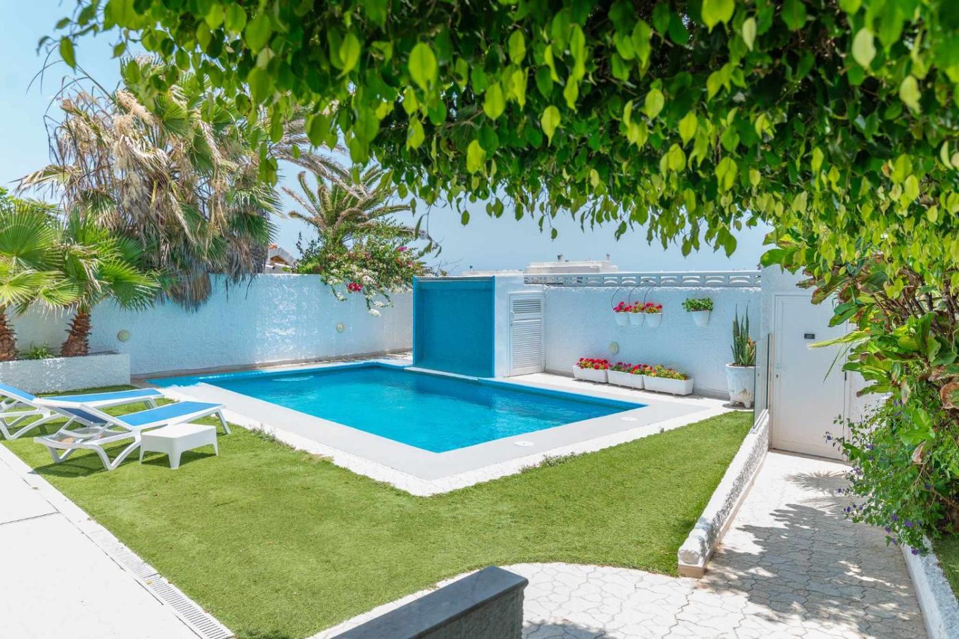 Villa. This villa features a private pool. This spacious villa features 1 living room, 4 separate bedrooms and 5 bathrooms with a bath and free toiletries. Guests will find a refrigerator, a dishwasher, kitchenware and an oven in the kitchen. The villa also comes with a barbecue. The unit has a washing machine, sea views, a terrace and winechampagne is available for guests. The unit has 6 beds.