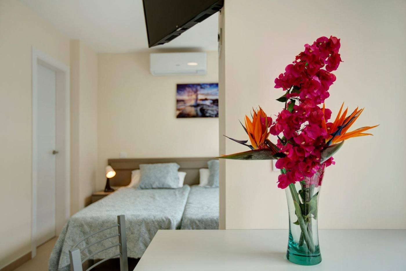 Superior One-Bedroom Apartment with Balcony. Featuring a private entrance, this air-conditioned apartment consists of 1 bedroom, 1 bathroom and a living room. The fully equipped kitchen features kitchenware, a microwave, a toaster and an electric kettle. Boasting a terrace with mountain views, this apartment also provides a washing machine and a TV with cable channels. The unit offers 3 beds.