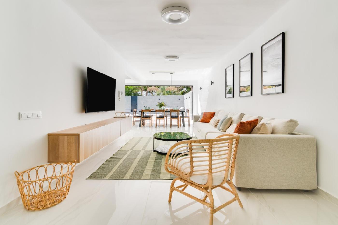 The spacious villa features a terrace, 3 bedrooms, a living room and a well-equipped kitchen. A flat-screen TV is provided. The property offers garden views.