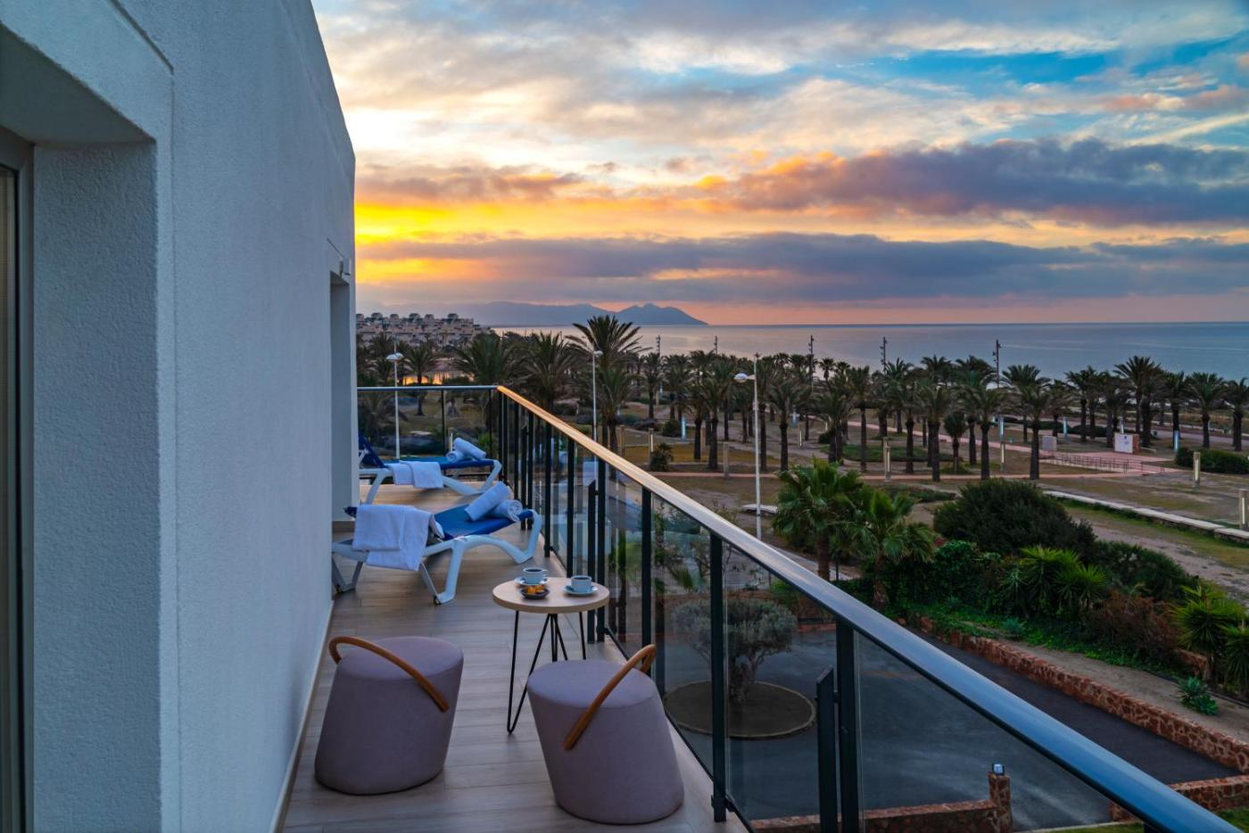 Superior with Side Sea View. The Sea View Superior Room​ of the Cabogata JardĂn Hotel & Spa stand out for their luminosity and their views to the Mediterranean.of them feature 32 square metres of space, rooms for 2 or 4 people, 2 single beds, some with sofa bed , free Wi-Fi and safe, TV ,minibar ($), private terrace and a maximum capacity for 4 people. ;