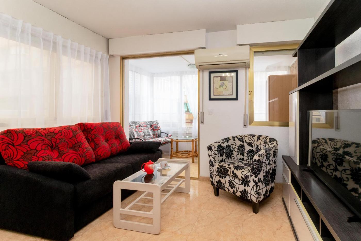 One-Bedroom Apartment. This air-conditioned apartment comprises 1 living room, 1 separate bedroom and 1 bathroom with a bath. Guests can make meals in the kitchen that is equipped with a stovetop, a refrigerator, a dishwasher and kitchenware. This apartment features a washing machine, a tea and coffee maker, a flat-screen TV and a terrace. The unit offers 2 beds.