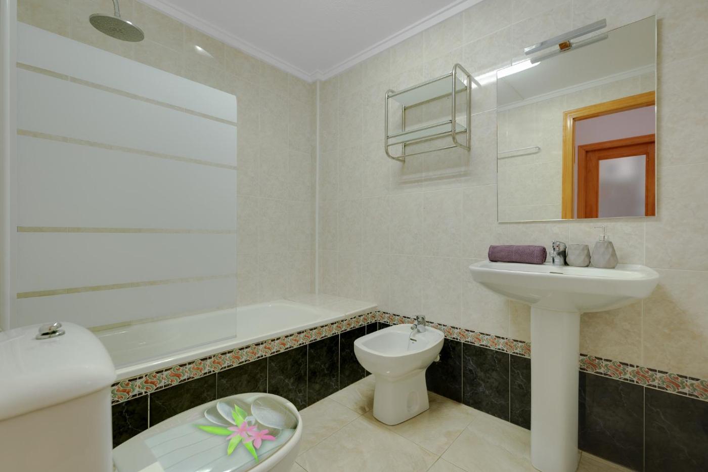 Two-Bedroom Apartment. This apartment features a pool with a view. Featuring a private entrance, this air-conditioned apartment is comprised of a kitchen, 2 bedrooms and 1 bathroom with a bath and a bidet. The well-fitted kitchen features a stovetop, a refrigerator, kitchenware and an oven. Boasting a terrace with sea views, this apartment also offers a washing machine and a flat-screen TV with satellite channels. The unit offers 3 beds.